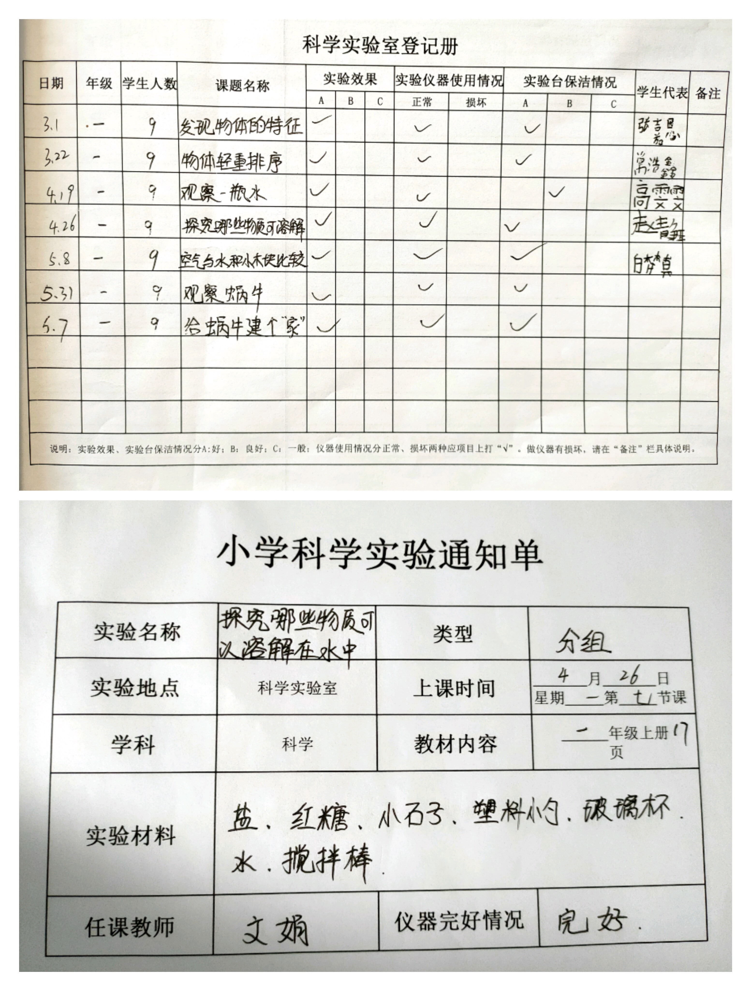 实验登记表