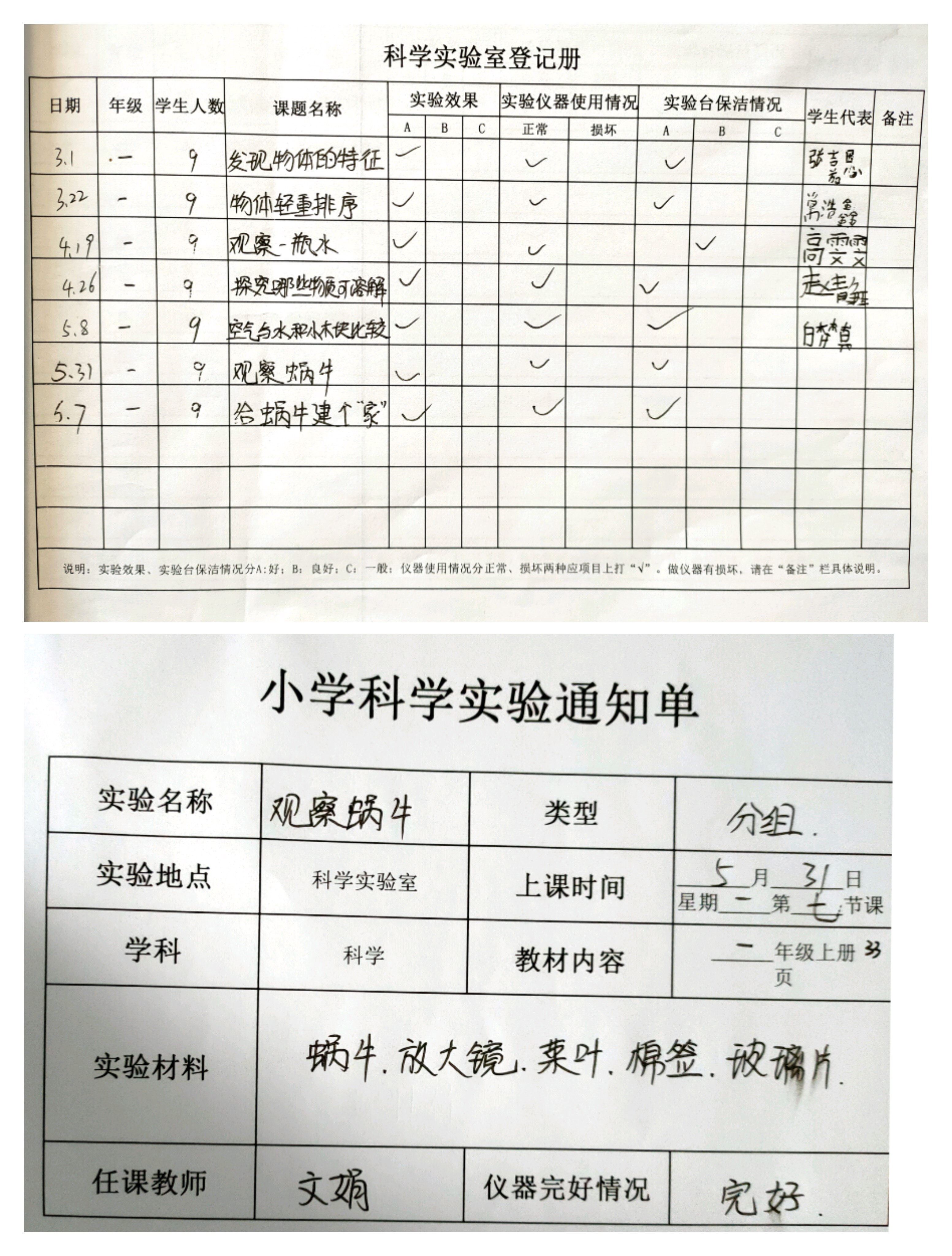 实验登记表