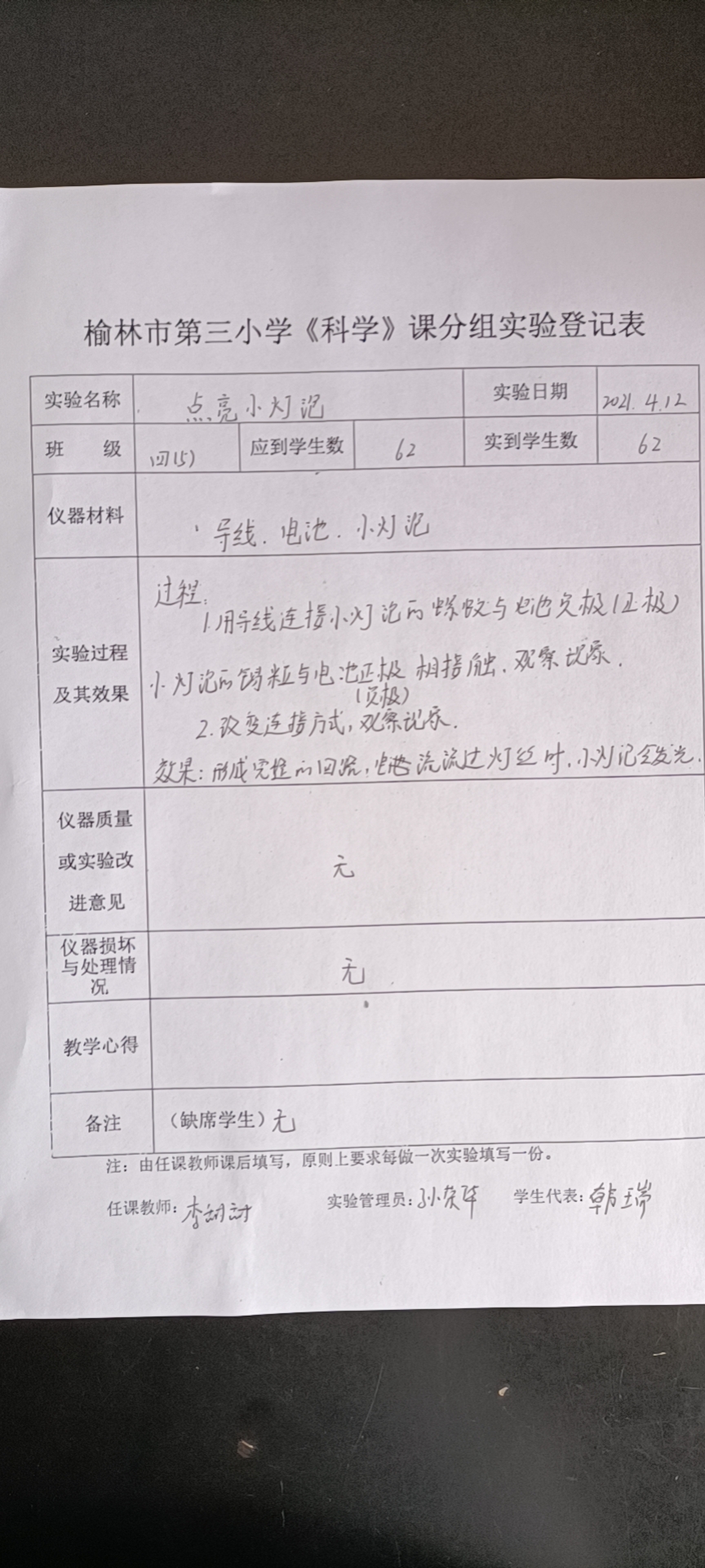 实验教师:李甜甜