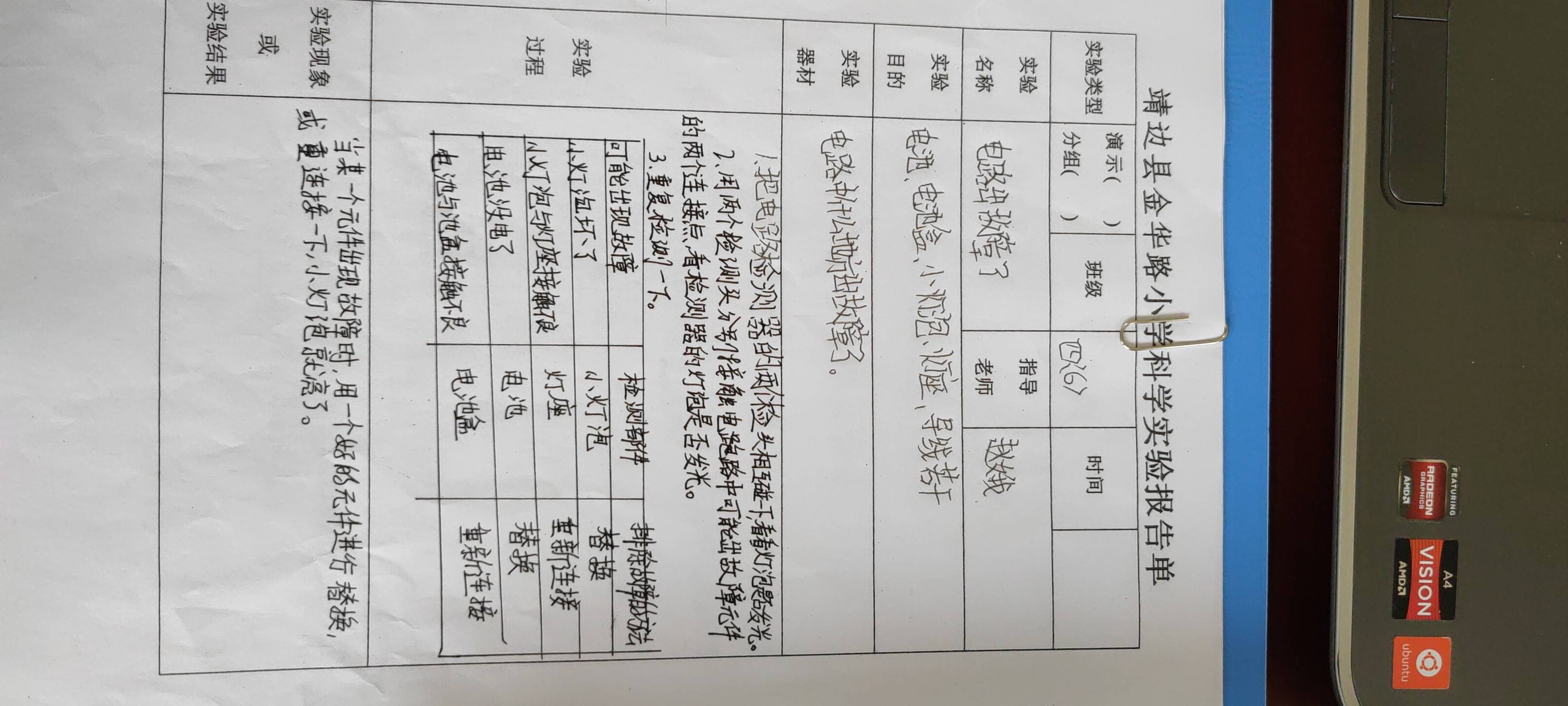 年级科目:四年级科学