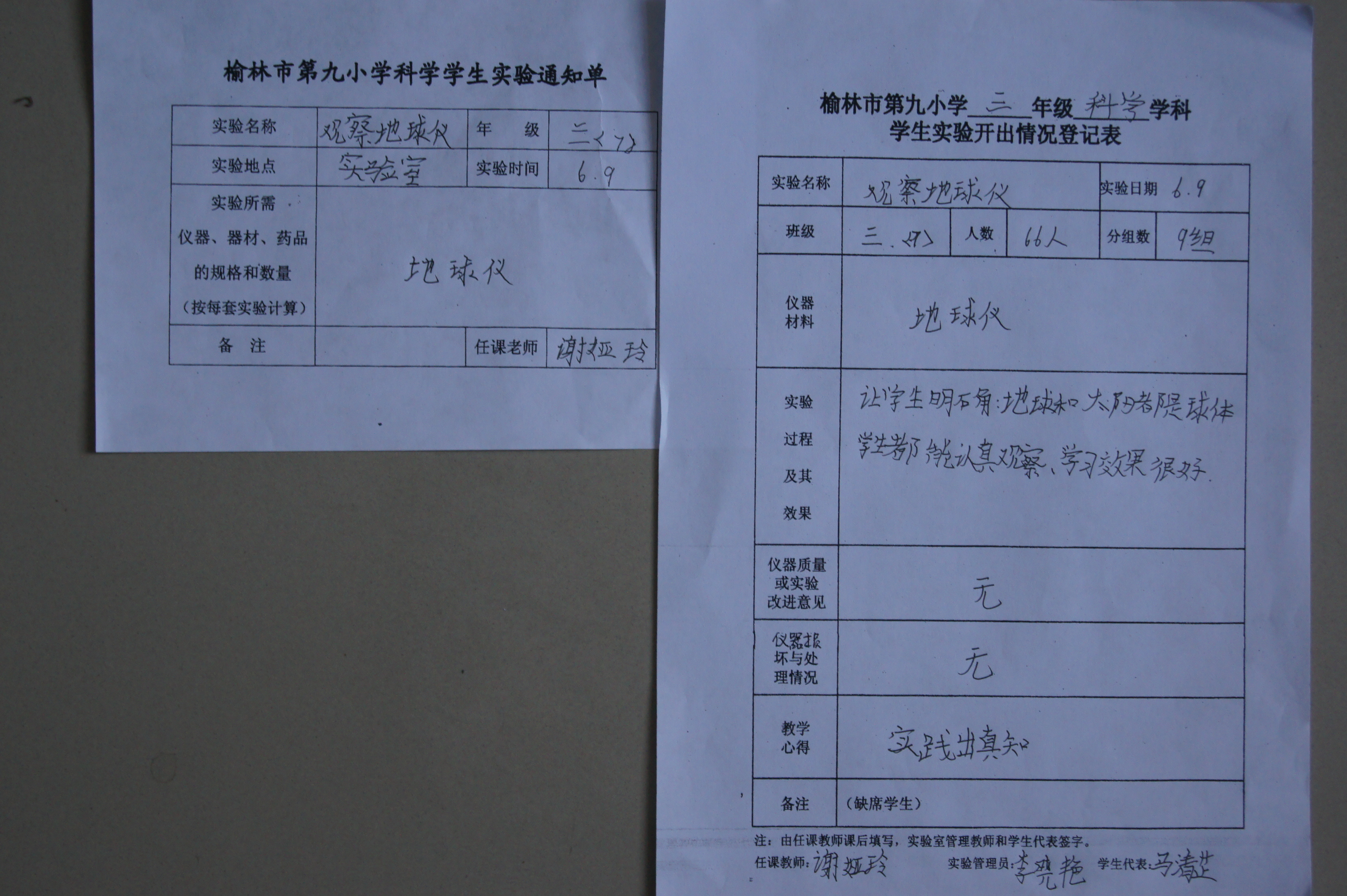 实验登记表