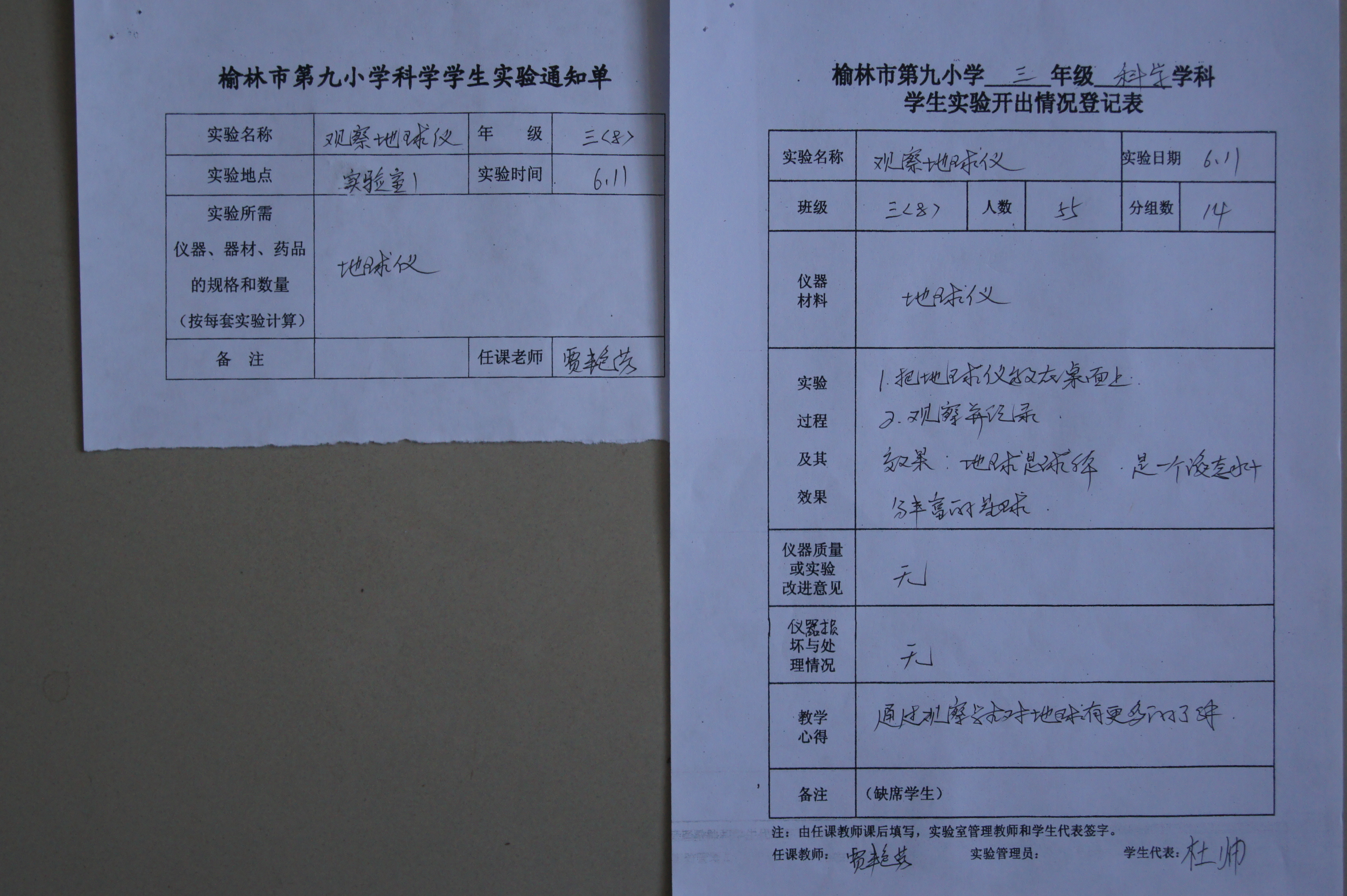 实验登记表