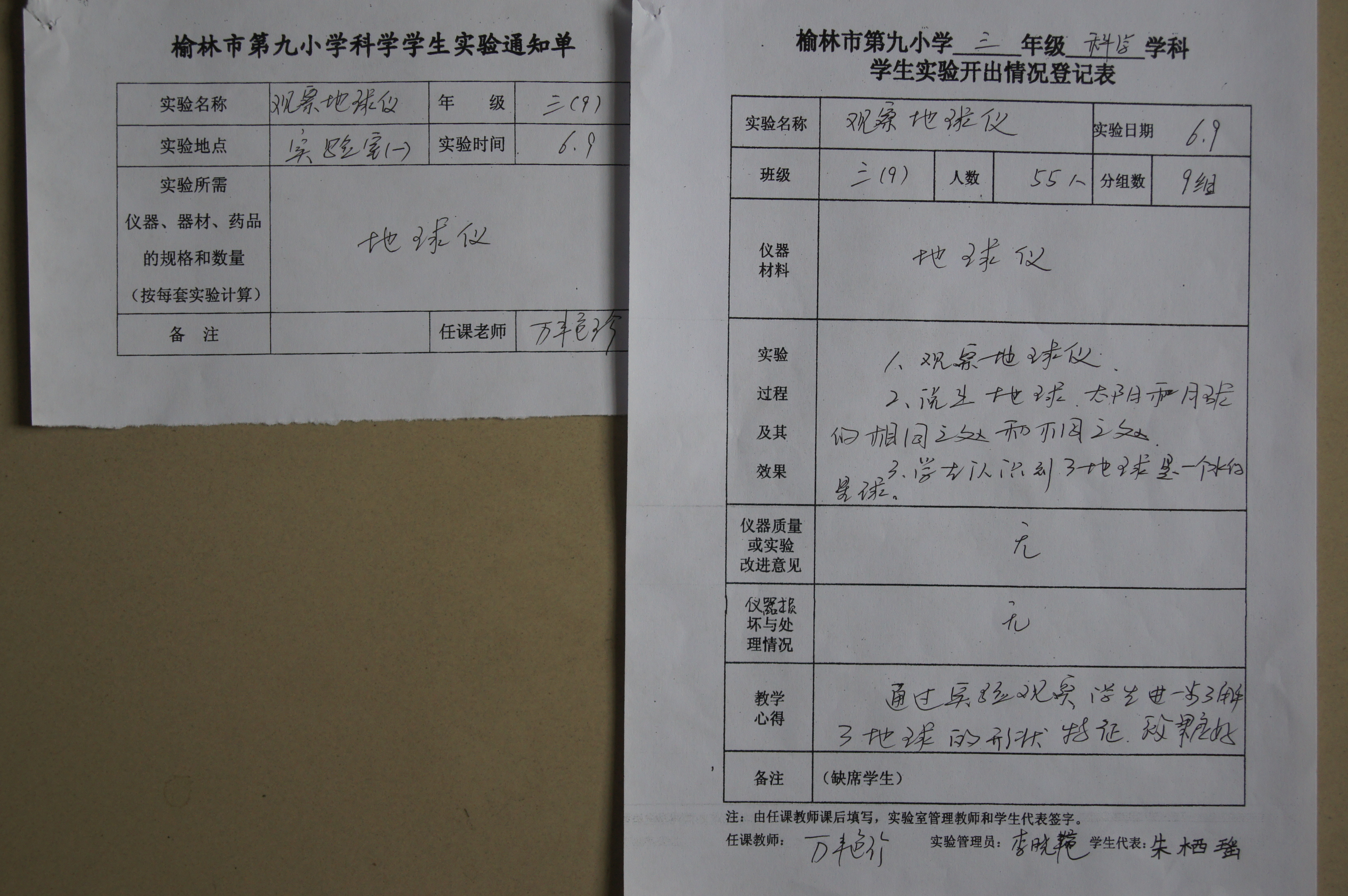 实验登记表