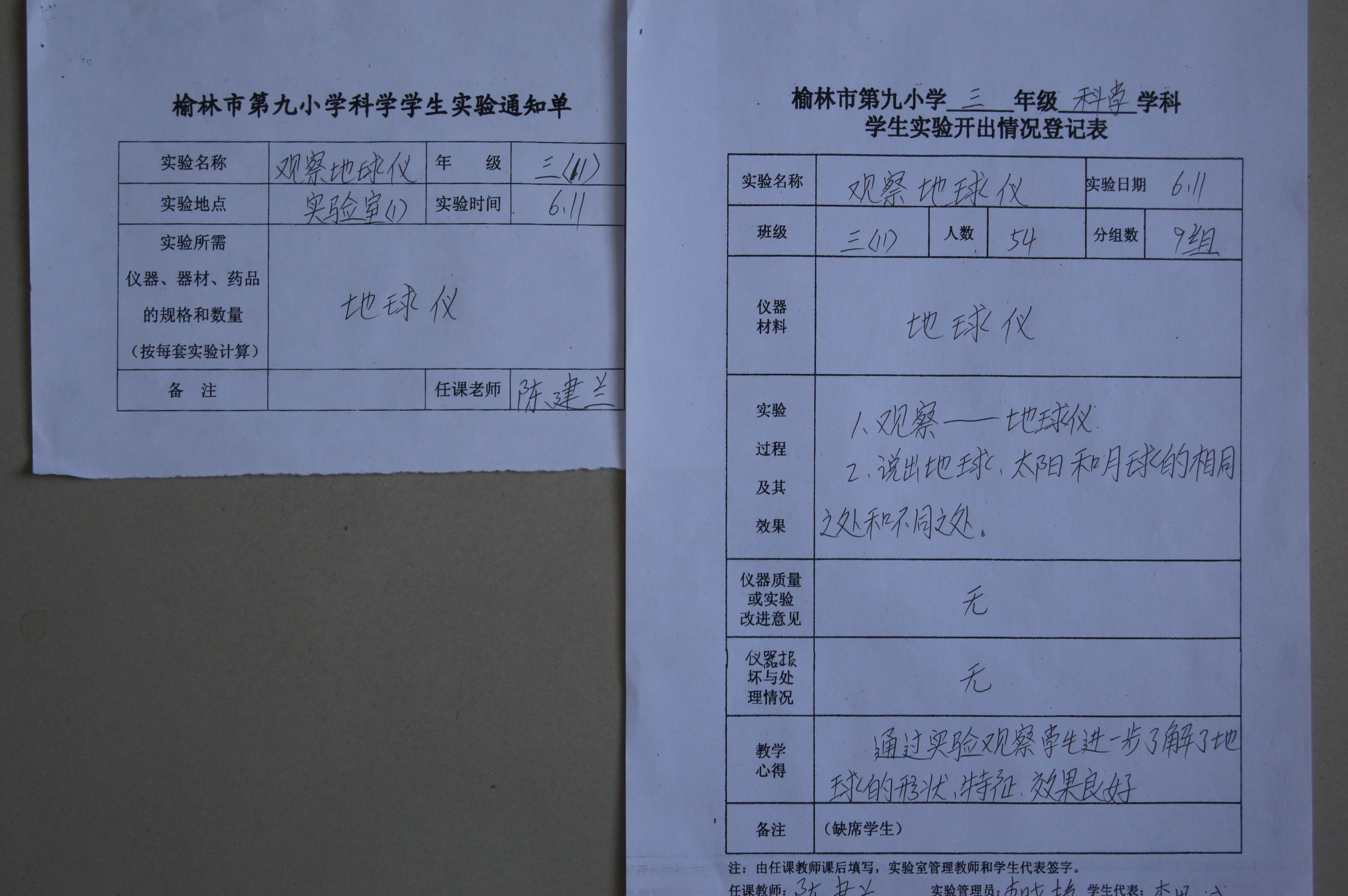 实验登记表