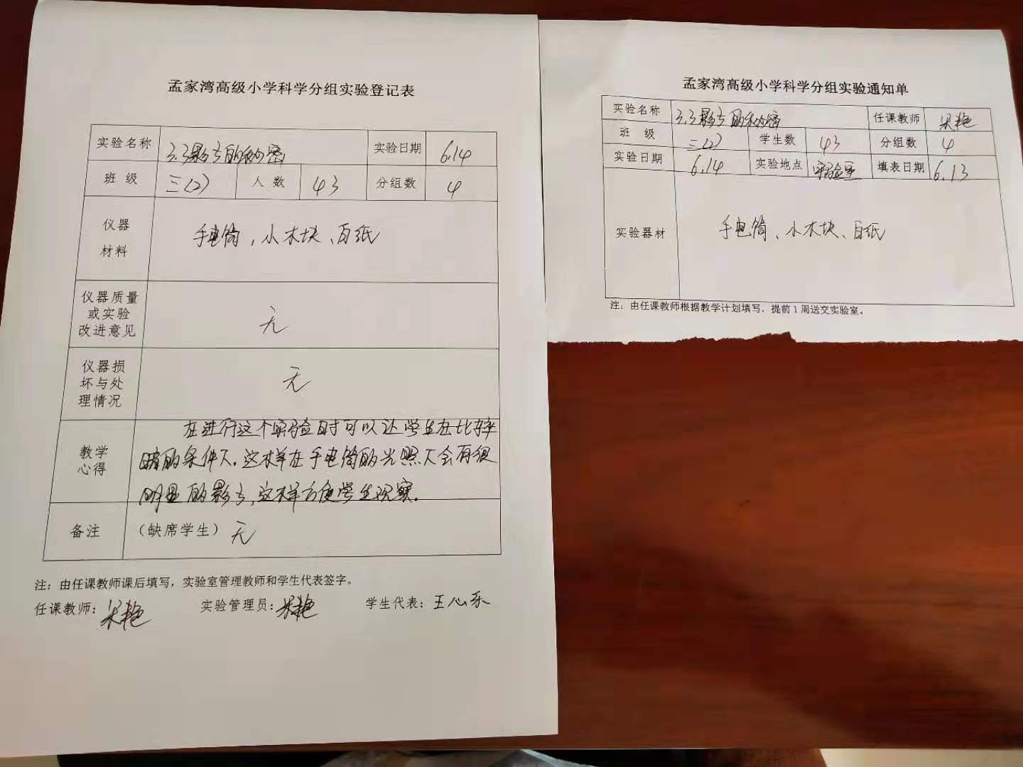 实验登记表
