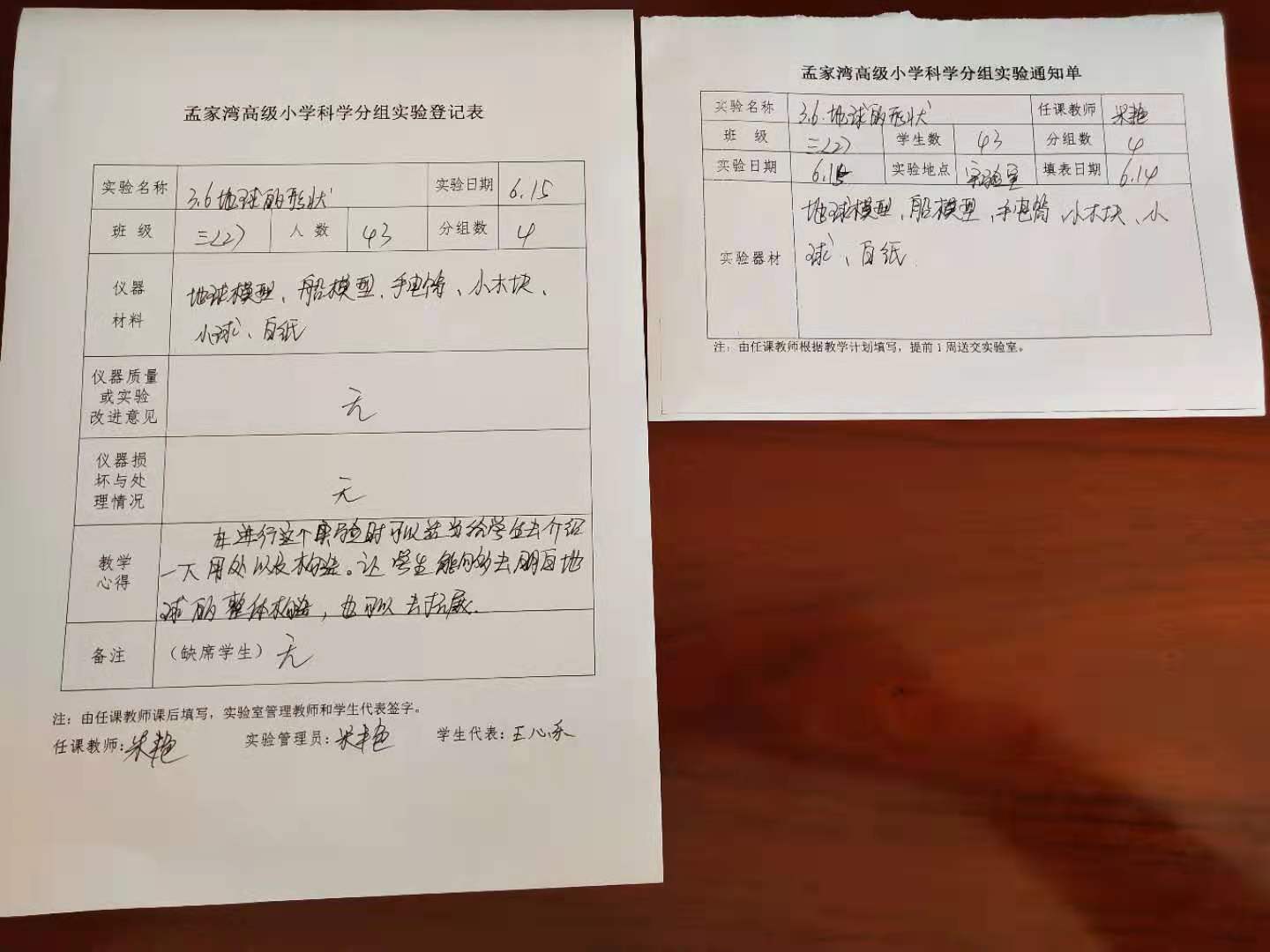 实验登记表