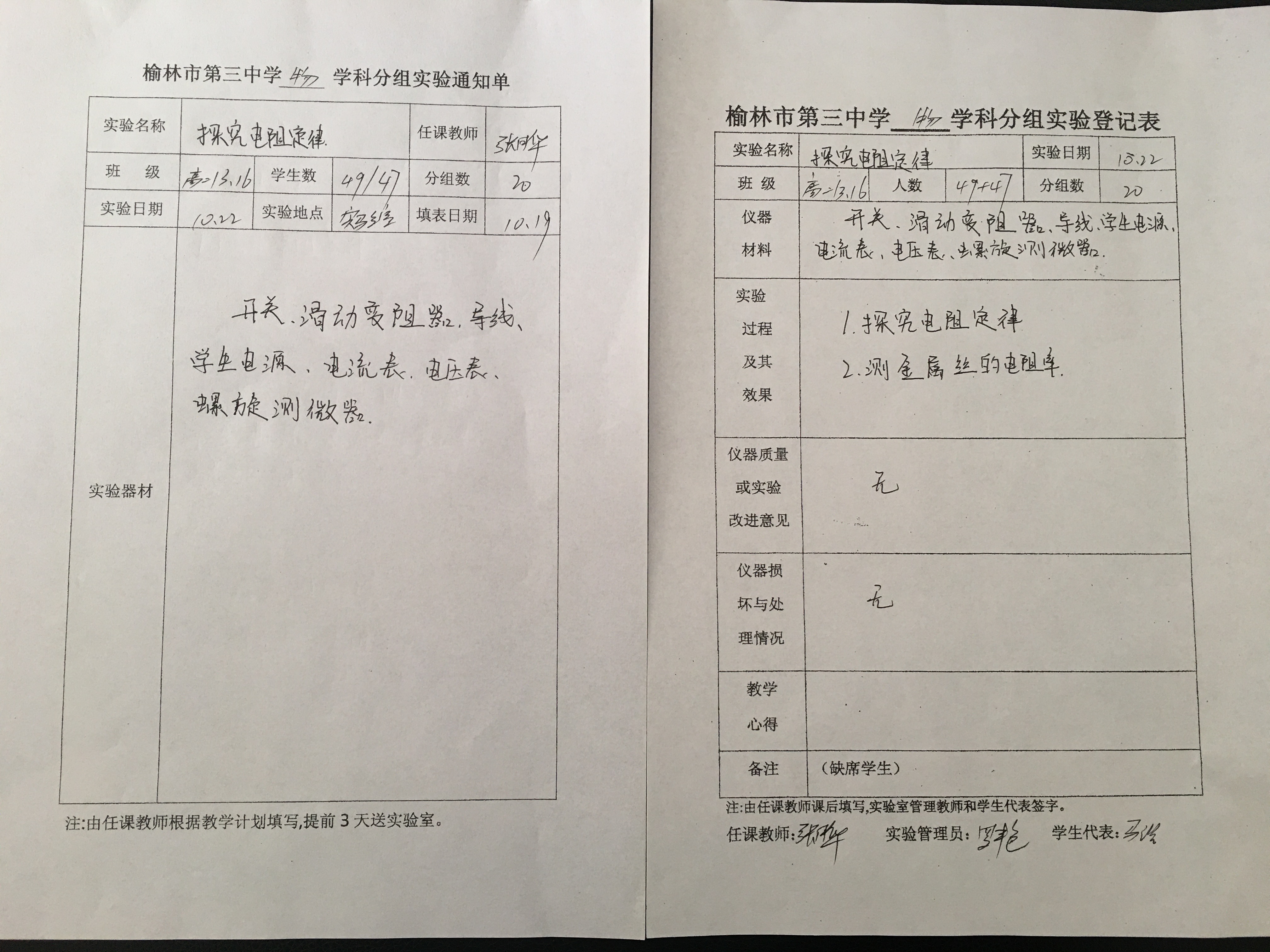 实验登记表