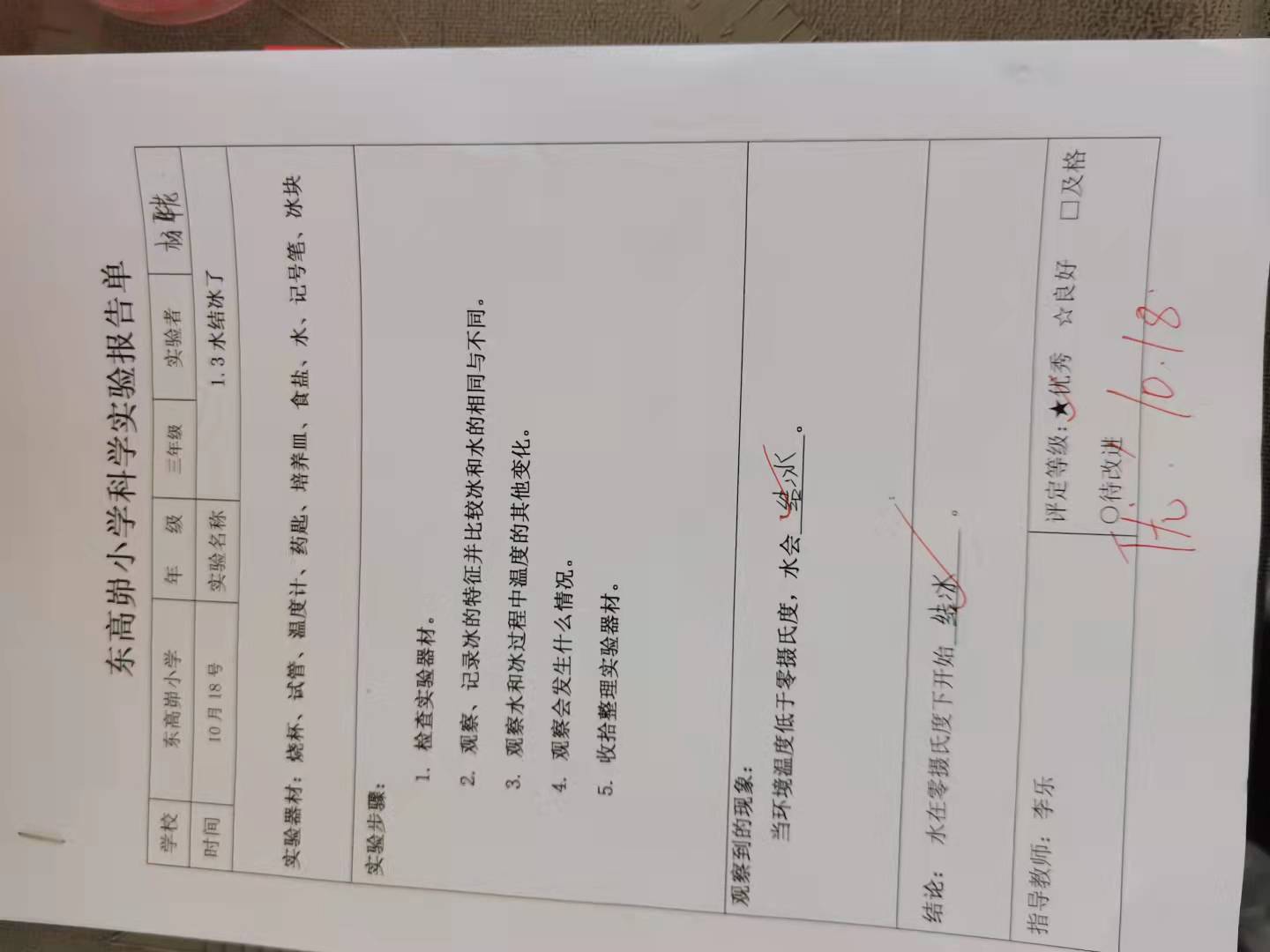 年级科目:三年级科学
