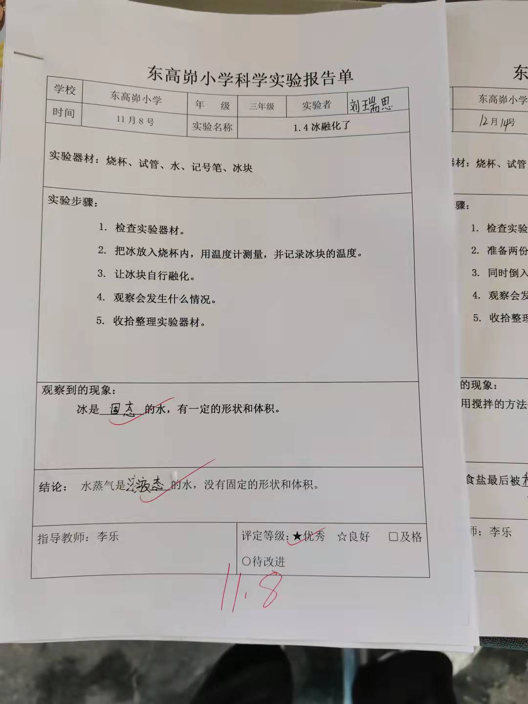 年级科目:三年级科学
