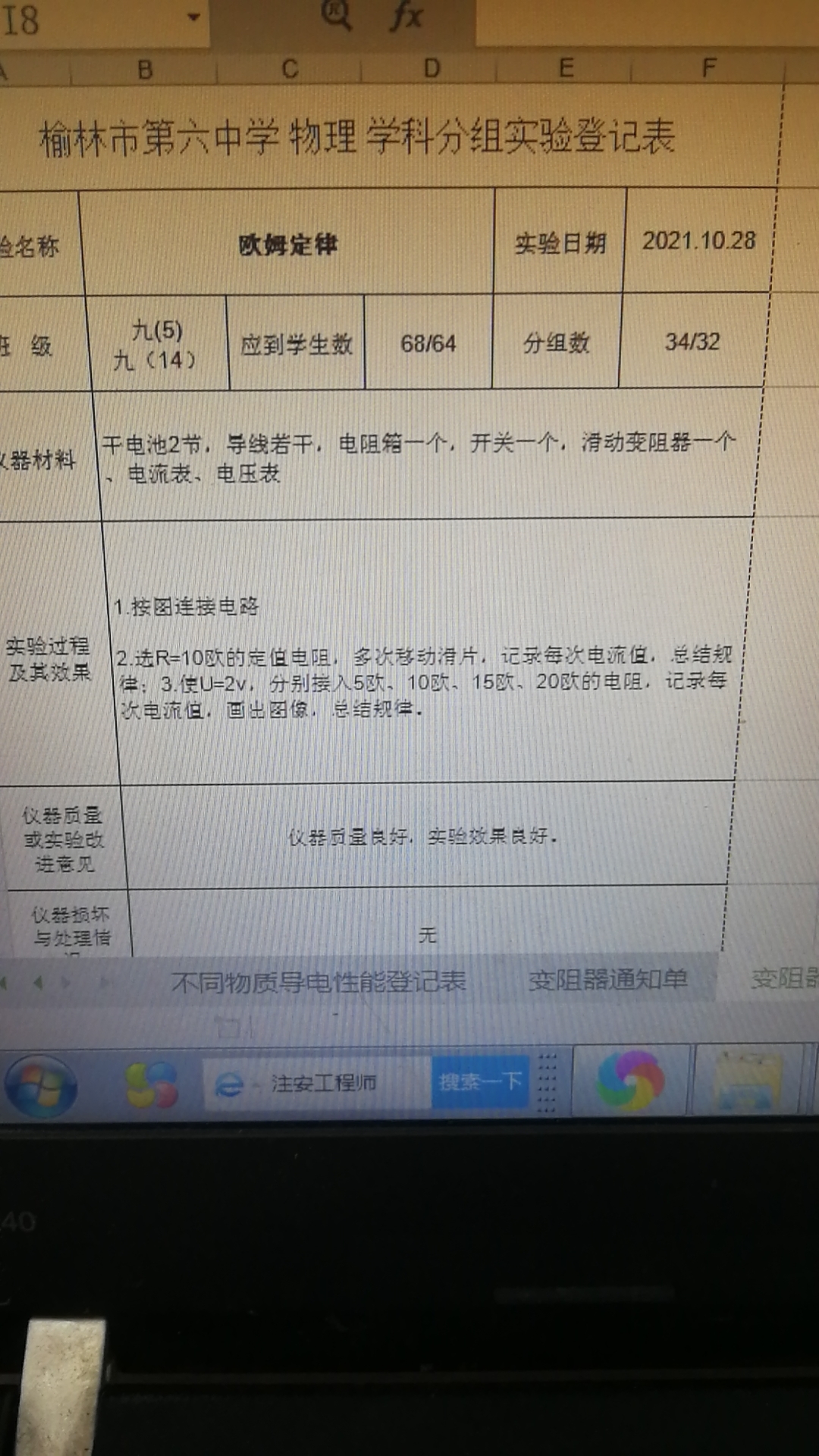 实验登记表