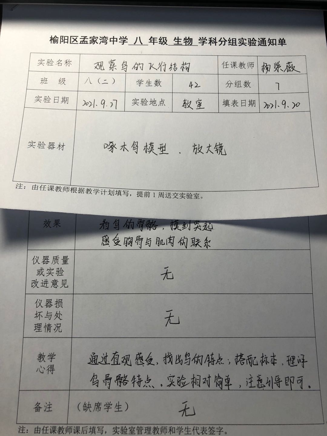 实验教师:杨紫薇