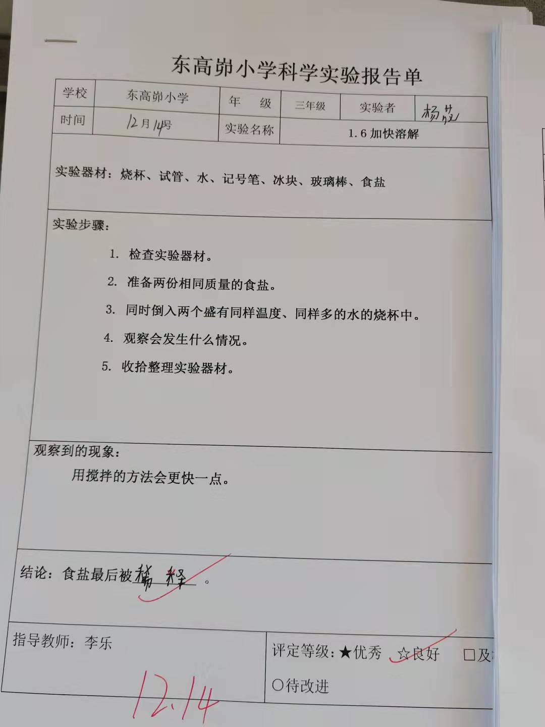 年级科目:三年级科学