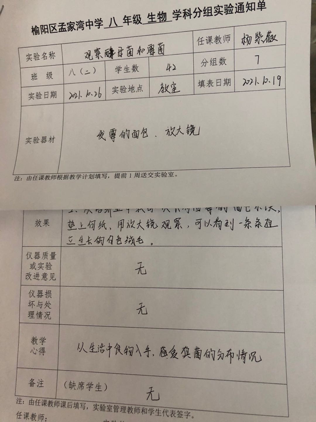 实验教师:杨紫薇