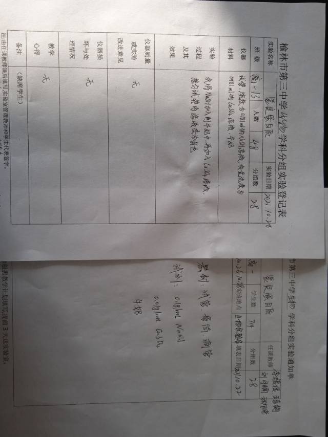 实验登记表