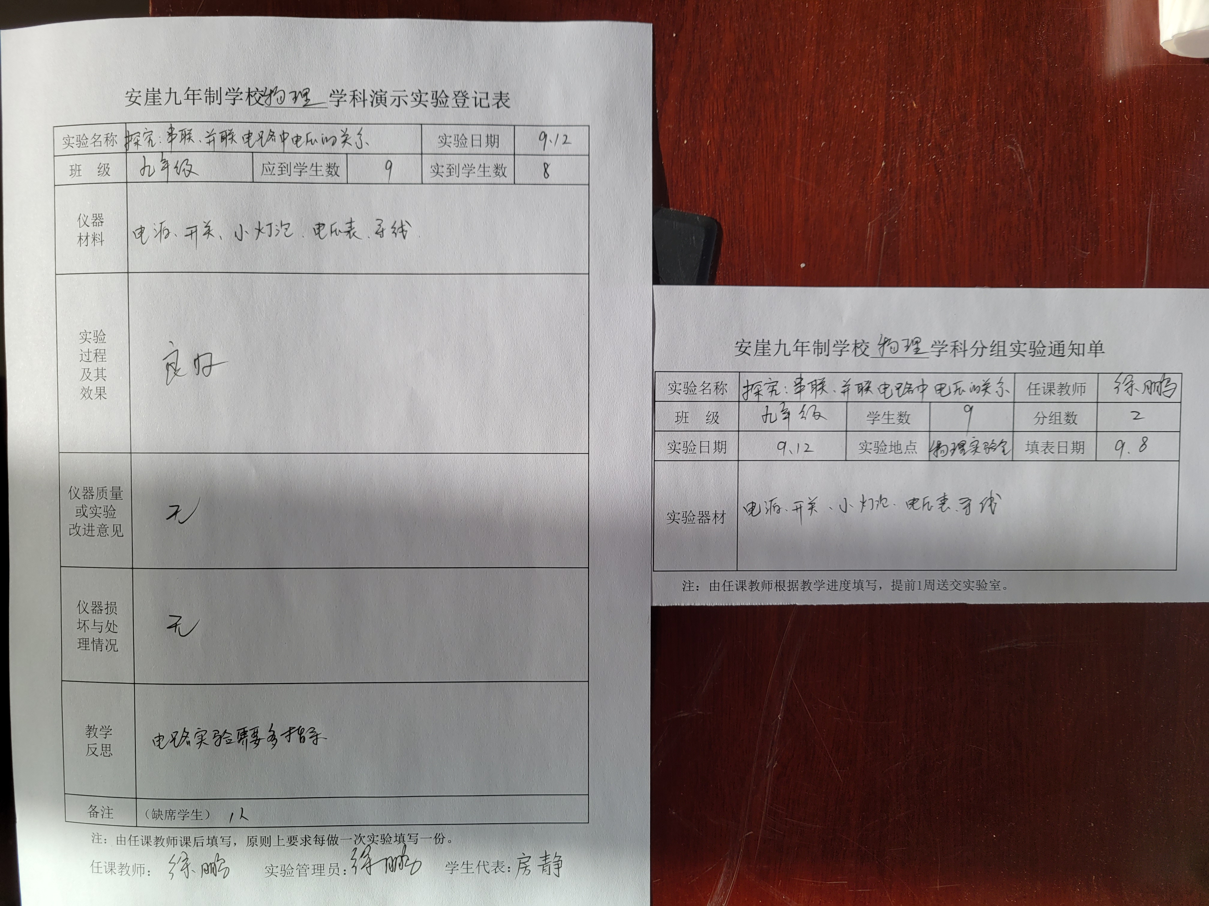 实验登记表