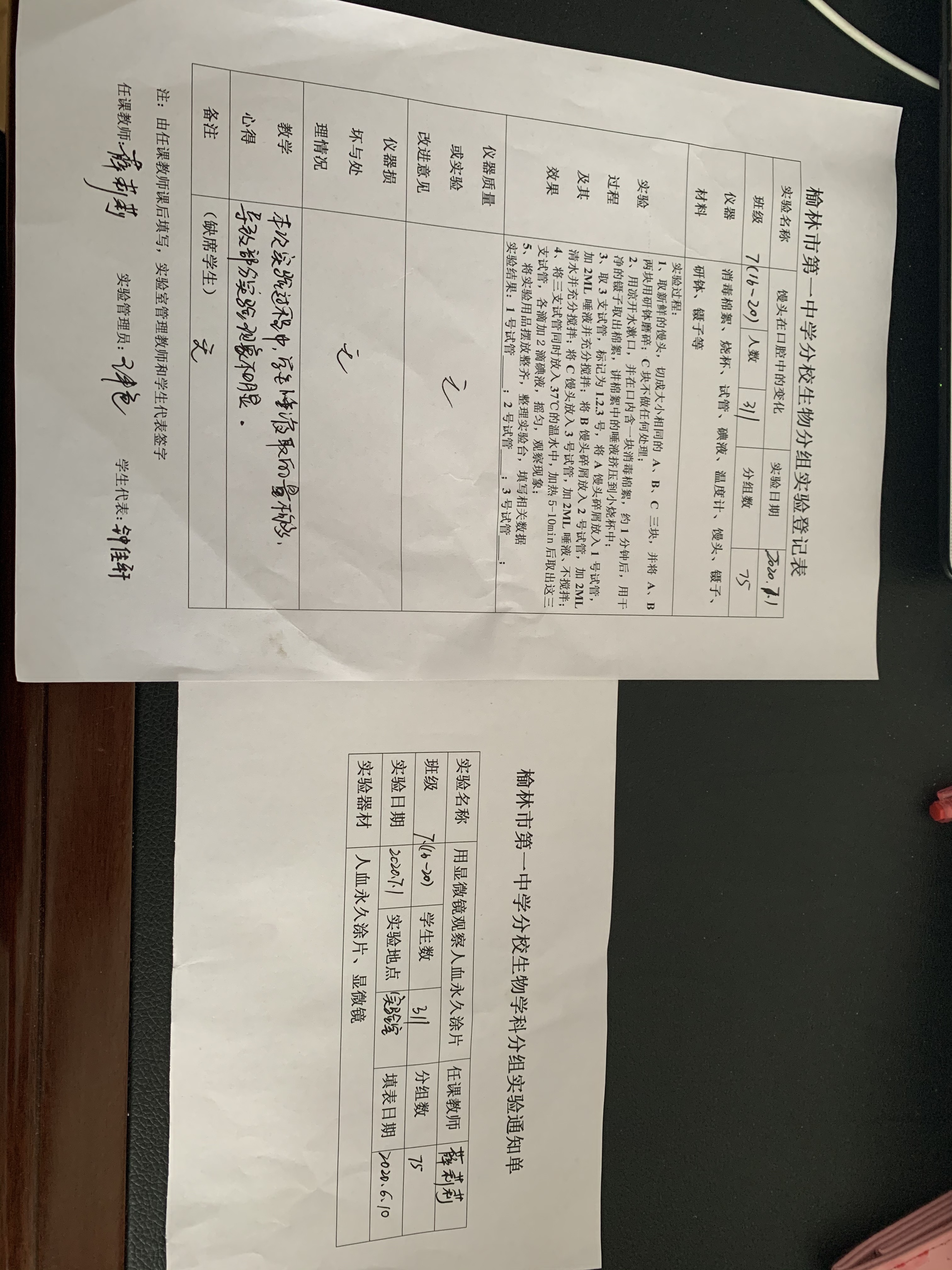 实验登记表
